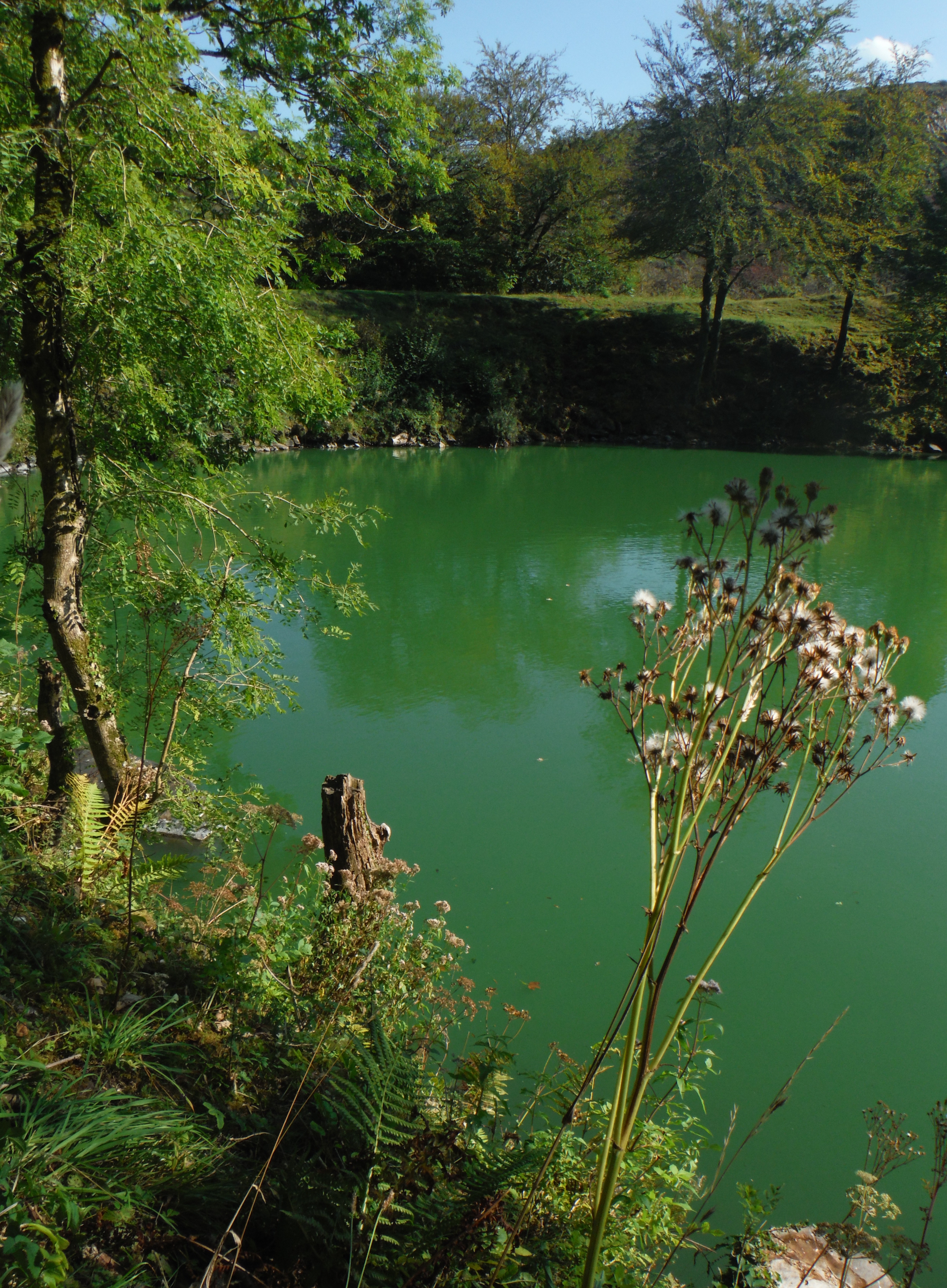 The voices pass and silence floods back into the quarry. Leaving my lair, I slide back out into the sunshine, into the heat and light that is focussed by the lake as if through a magnifying glass. I dive down, through a palette of greens that change from sage, through emerald to bottle as I probe deeper into the opaque water. Rising back, to float lazily at the heart of the pool, I am reminded of a more sombre day.