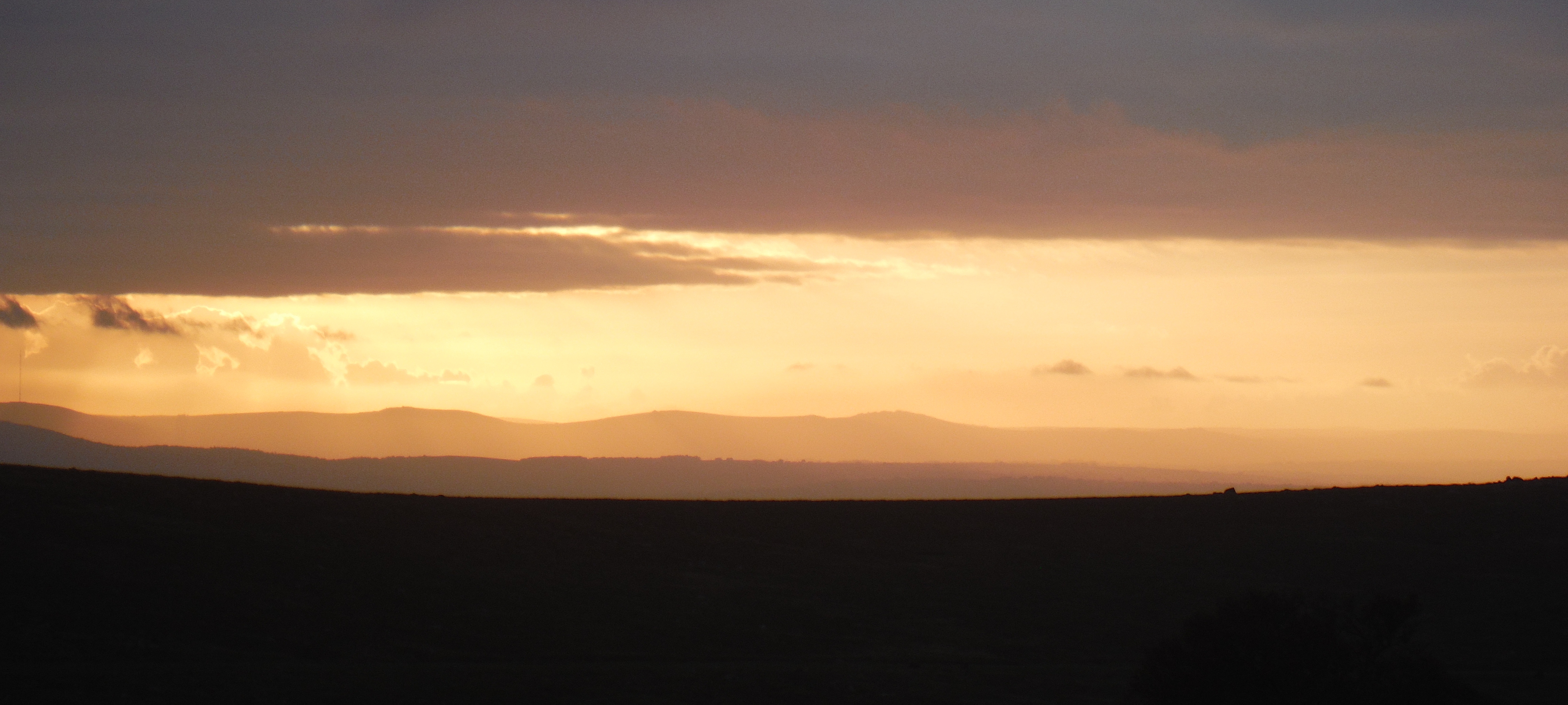 A burst of saffron heralded the slow steady decline of the sun, sinking deep beyond the silhouettes of Caradon and Bodmin moor to the west.